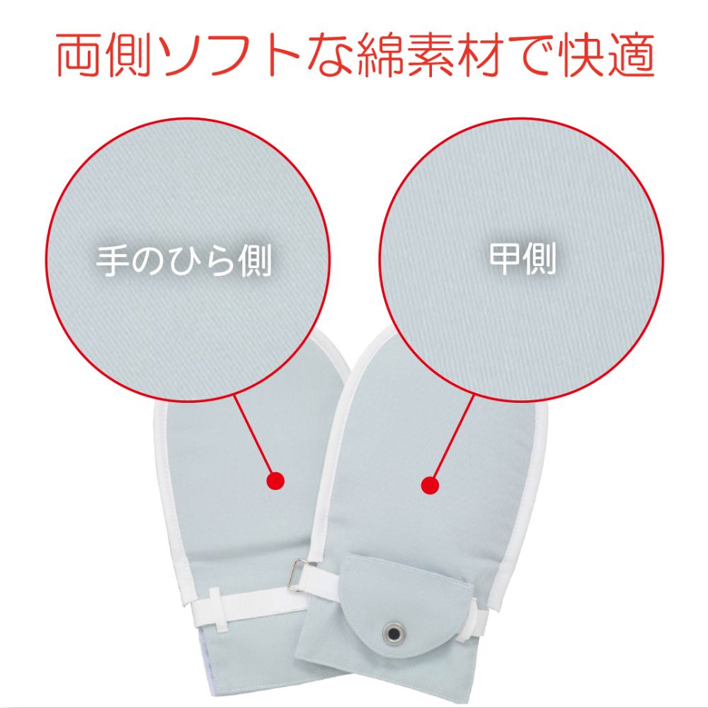 ●交換可能なアイデアホック付きベルトカバーです。●手袋の内部はゆったりとした設計で余裕があり、手指の動きを妨げません。●面ファスナー(マジック式)により調整可能な手首ベルトです。●手首ベルトをカバーで覆い取り外しにくくした設計です。●ご本人には外しにくい構造のアイデアホックを採用しています。●色:ブルー●サイズ:M●入数:1枚入●材質:表地/綿100%(綾織り)、裏地/ポリエステル65%・綿35%(平織り)、縁取りテープ・ベルト/ポリエステル100%、面ファスナー/ナイロン100%、ホック/医療用ステンレス●左右兼用●適応手首周囲:120~180mm●適応手の長さ:140~180mm