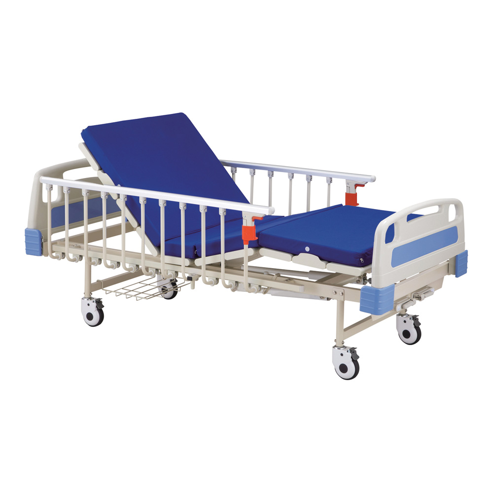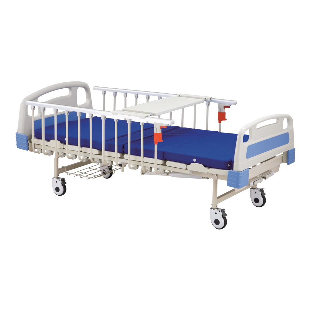 ●補助ダンパー付きですので、軽い力でベッドの上半身部分とフット部分をギャッチアップすることができます。●ベッドの両側には、サイドレールが付いています。●ベッドは、通気性の良いパンチング状のパネル床で、湿気を除き雑菌の繁殖を防ぎます。●ヘッドボードとフットボードは、緊急時に取り外すことができます。●直径120mm帯電防止キャスターですので、移動も楽に行えます。●幅×長さ×高さ(mm):1020×2135×915●重量(kg):79(※ベッド本体)●★入数:1個●材質:フレーム/スチール(粉体塗装)、点滴棒/ステンレス(SUS304)、サイドレール/アルミニウム、ヘッドボード・フットボード/ABS樹脂、マットレス/(中身)ウレタンフォーム・(カバー)ナイロン●ギャッチアップ角度:ヘッドボード側/水平角65°●サイドレール高さ:ベッド面から約350mm●別売テーブル有効サイズ:(幅)690×(奥行)280mm●キャスター:φ120mm帯電防止キャスター(回転・旋回ロック付き、エラストマー製)●網棚サイズ:440×355×30mm●耐荷重:170kg