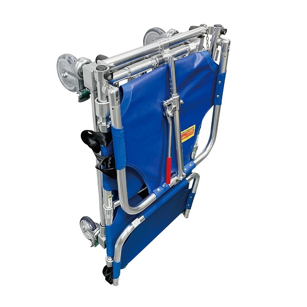 ●折りたたみ式で収納スペースに困らず、組立が簡単に行えるストレッチャーです。●防炎カバー・点滴棒架台セット・ボンベ架台・安全ベルト付きのフル装備仕様です。●サイズ(mm):550×1820×390~780●材質:フレーム/アルミ、マット/ポリエステル、枕/ウレタン●折りたたみ時サイズ:550×1020×300mm(マットレス・揺れ防止ハイプ含まず)●マットレス厚み:40mm●キャスター:Φ125mm(単独2輪ロック)●重量:トランスポーター/約21.7kg 担架/約5.3kg●付属品:マットレス・防炎カバー、点滴棒架台セット、ボンベ架台、安全ベルト●※運送費・搬入費・据付費・組立費等が別途必要です。お問い合わせください。●※ストレッチャー上での心肺蘇生は行えません。