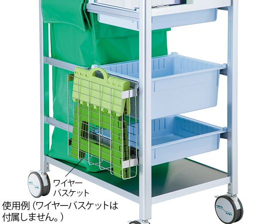 ●軽量で丸みのあるアルミフレームを使用したワゴンです。●着脱が簡単なフタ付きリネン袋が付属しています。●開閉式の作業台が付属しています。●オプションの樹脂製フックに袋を取り付けたり、ワイヤーバスケットを取付可能です。●アルティアハーフトレーに対応しています。●サイズ(mm):680×455×1000●材質:●▼フレーム/アルミニウム●▼底板・持ち手・仕切/ステンレス●▼作業台/スチール●▼樹脂部/PP(ポリプロピレン)●▼リネン袋/ターポリン●キャスター:Φ100mm双輪ウレタン製(対角ストッパー付き)●本体重量:約8kg●本体セット内容:●▼リネン袋(0-1643-12)×1個●▼アルティアハーフトレー(8-5866-14)×1個●※本体にワイヤーバスケット・樹脂フックは付属しません。●※ワイヤーバスケット取付時には、樹脂フック(別売)が4個必要です。●交換用キャスター:ナビスキャスターΦ100 ネジ S有り(品番/8-2167-02-02)