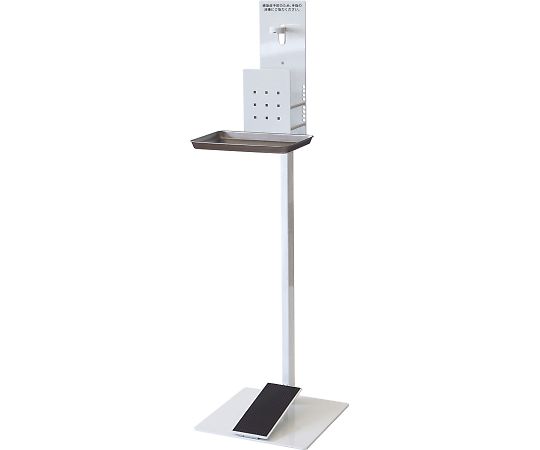 ●一般的な市販の1Lポンプボトルをセットして使用可能です。●手を使わずに足で踏むだけで使用できるため衛生的に手指を消毒できます。●マグネット着脱式でお手入れが容易なステンレス製トレー付きです。●つまづきにくい薄型ベースです。●サイズ(mm):300×348×1030●重量(kg):7●★入数:1個●材質:本体/スチール(粉体塗装)、トレー/ステンレス●適応ボトルサイズ:(幅)100×(奥行)97×(高さ)215~275mm(7段階)●付属品:ステンレス製トレー、表示シール(「感染症予防のため、手指の消毒にご協力ください。」、「ご自由にお使いください」)●組み立て式●※消毒液・ポンプは付属しません。