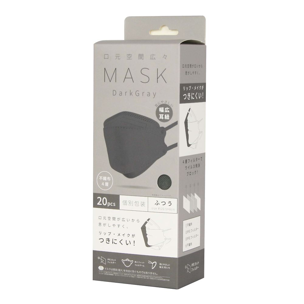 口元空間広々マスクダークグレー ダークグレー