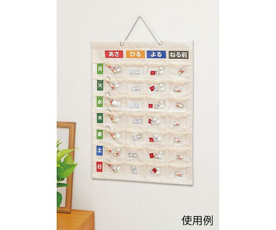 ●1日4回(LLは6回)・1週間分に分けて薬を管理できます。●サイズ:M●縦×横(mm):515×370●材質:ナイロン・PVC●ポケットサイズ:約45×80mm●重量:約150g●付属品:入替えカード・吊りヒモ