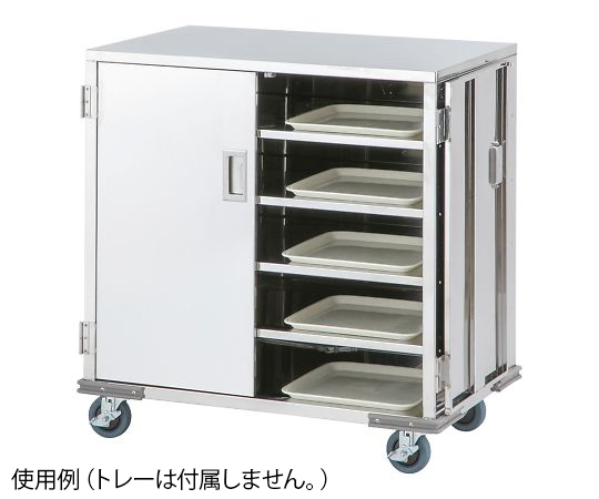 ●開口部が広くて使いやすく、お手入れもらくらく!●開き戸のため凹凸が少なくステンレス製ですので、汚れた場合でも簡単に清拭することが出来ます。●ハンドルが埋め込まれているため、扉を270°開くことが出来ます。●配膳にも下膳にも使用出来ます。●幅×奥行×高さ(mm):890×570×1000●重量(kg):約50●★入数:1個●材質:本体・棚板/ステンレス(SUS430)、クッションバンパー/TPR●キャスター:φ100mm(静音タイプ・4輪ストッパー付き)●10人用●棚板数:4枚(5段)●棚板サイズ:約860×510(最上階のみ有効幅740)mm●耐荷重:4kg●有効棚間隔:約130mm●適応トレーサイズ:500×350mm