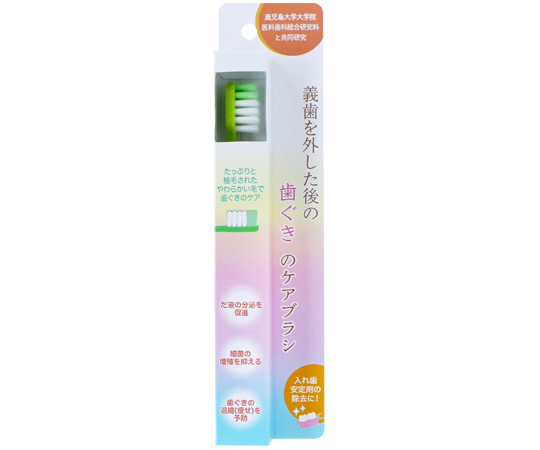 ●たっぷりと植毛された柔らかい毛が水分をしっかりと含み、口中を潤しながら口腔粘膜のケアができます。●置いた時にブラシヘッドが下に接地しない設計です。●口腔内を清潔に保つことで、高齢者の誤嚥性肺炎の予防や、周術期患者の感染症・合併症のリスク軽減にも役立ちます。●唾液の分泌を促したり、舌・口唇・頬などの機能を賦活するための機能的口腔ケア効果が期待できます。●毛の硬さ:やわらかめ●幅×長さ(mm):14×186●入数:1箱(1本入)●材質:柄/PP(ポリプロピレン)、毛/PBT(ポリブチレンテレフタレート)●ヘッド部サイズ:13×27mm●耐熱温度:80℃●植毛本数:約160本/1穴(標準植毛の約1.7倍)×16穴●毛の太さ:5mil●重量:11g