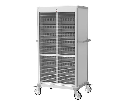 ●国際標準規格(ISO3394)の300×400バスケット(品番7-9655-12)を使用できる注射薬カートです。●バスケット3410の他、トレイ3405(7-9655-11)やアルティアハーフトレー(別売8-5866-11~18、8-4892-11~14)も使用できます。●側板にはマグネットを取り付けることが可能ですので、マグネットタイプの各種ホルダー(7-8401-01、8-8267-01)が取り付けられます。●スムーズに搬送できるΦ125mmキャスターを採用しています。●幅×長さ×高さ(mm):877×561×1530●トレー収納数(個):18●材質:フレーム/アルミニウム、背板/アルミニウム(ポリエステル樹脂塗装)、側板/スチール(ポリエステル樹脂塗装)、シャッター/PVC(塩化ビニル樹脂)、バスケット3410/ABS(持続性帯電防止)●重量:82kg●サカセトレー対応●アルティアトレー対応●付属バスケット数(7-9655-12):18個