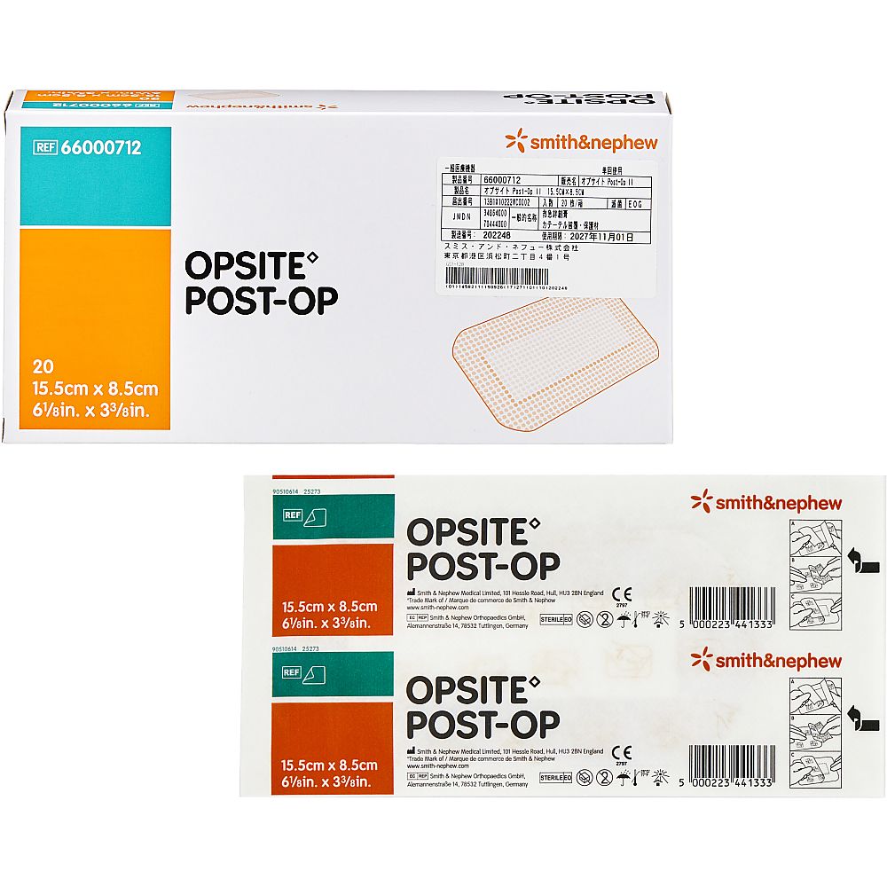 ●高い水蒸気透過性がドレッシング下の水分貯留を防ぐため、固定性を増し長期固定が可能になります。●防水性があり貼付したままでのシャワー浴が可能です。●創面に固着しにくい多孔性ポリエステルフィルムにより、交換時の疼痛を緩和します。●低アレルギー性アクリル系粘着剤を使用、皮膚刺激が少なく長時間の使用も可能です。●関節部等に貼付しても、はがれにくく、快適です。●多くの病院で採用●細長い傷や関節部にできた傷にもフィットしやすい長方形サイズ●サイズ(mm):155×85●パッド部サイズ(mm):120×37●入数:1箱(20枚入)●材質:基材/PU(ポリウレタン)フィルム、粘着剤/アクリル系、パッド部/レーヨン、ポリエステル●EOG滅菌済(個包装)●用途:裂傷・擦過傷等の軽微な創傷、縫合創等の被覆・保護及び、注射針、カテーテル等の穿刺部の固定及び被覆・保護