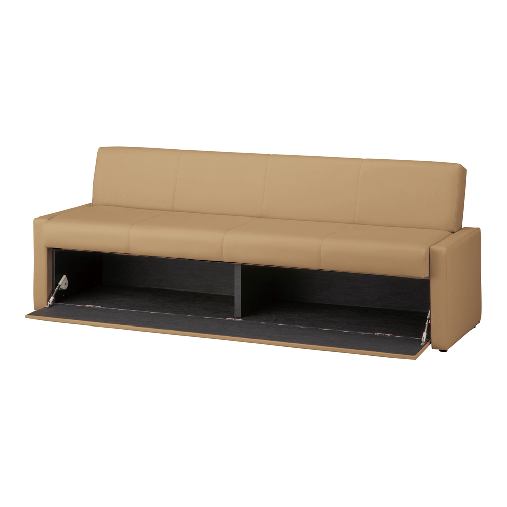 ●リクライニングするとベッドとして使用可能です。●足元は収納付で備蓄品等を収納可能です。●マット部はアルコールや次亜塩素酸で清拭できます。●便利な収納付です。●色:モカ●幅×奥行×高さ(mm):1800×570×700●★入数:1台●材質:マット/抗菌レザー張り(次亜塩素酸ナトリウム対応)●ベッド時サイズ:1800×730×405mm●収納部サイズ:808×420×240mm×2●座面奥行:400mm