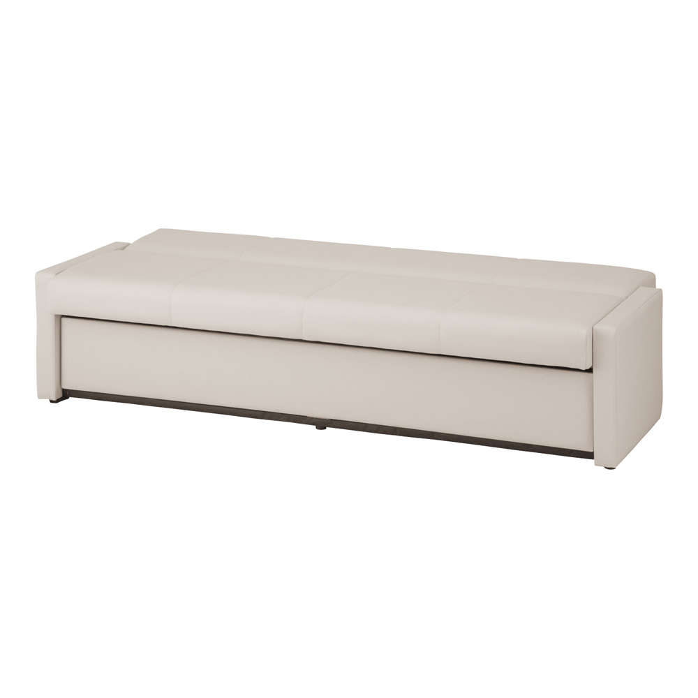 ●リクライニングするとベッドとして使用可能です。●足元は収納付で備蓄品等を収納可能です。●マット部はアルコールや次亜塩素酸で清拭できます。●便利な収納付です。●色:ミルク●幅×奥行×高さ(mm):1800×570×700●★入数:1台●材質:マット/抗菌レザー張り(次亜塩素酸ナトリウム対応)●ベッド時サイズ:1800×730×405mm●収納部サイズ:808×420×240mm×2●座面奥行:400mm