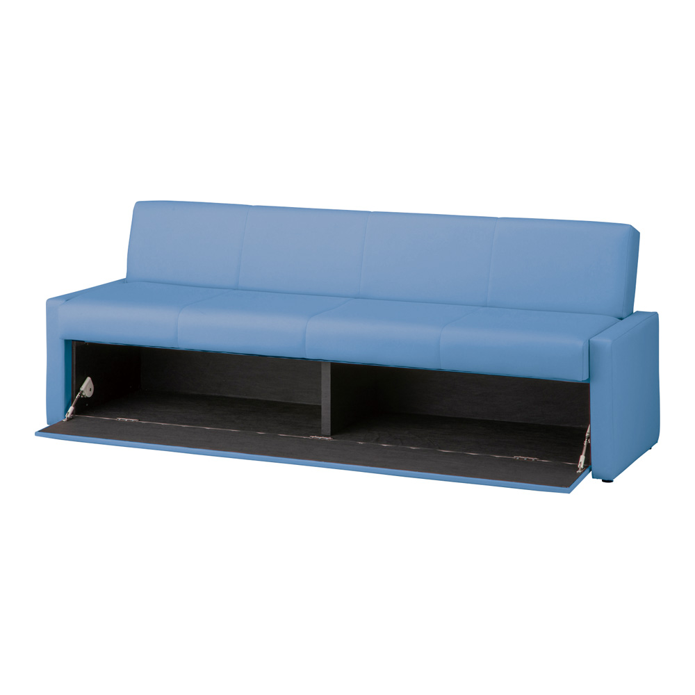 ●リクライニングするとベッドとして使用可能です。●足元は収納付で備蓄品等を収納可能です。●マット部はアルコールや次亜塩素酸で清拭できます。●便利な収納付です。●色:グレープ●幅×奥行×高さ(mm):1800×570×700●★入数:1台●材質:マット/抗菌レザー張り(次亜塩素酸ナトリウム対応)●ベッド時サイズ:1800×730×405mm●収納部サイズ:808×420×240mm×2●座面奥行:400mm