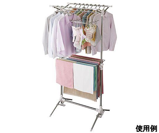 ●サビにくいステンレス巻きスチールパイプの室内用物干しです。●上下に伸縮するため、洗濯物の種類や量に合わせて高さを調節することが可能です。●使用しない時はコンパクトに収納ができます。●使用サイズ:840×660×1320~1800mm●収納時サイズ:840×120×1530mm●重量:4.1kg●材質:パイプ/ステンレス巻きスチールパイプ、樹脂部/ABS樹脂●耐荷重:ハンガー部分/約12kg、タオルハンガー部/約4kg、全体/約13kg●干せる目安:シャツ等12枚、バスタオル5枚、タオル6枚、小物20枚●組み立て式●コード品番:EA951FB-42A