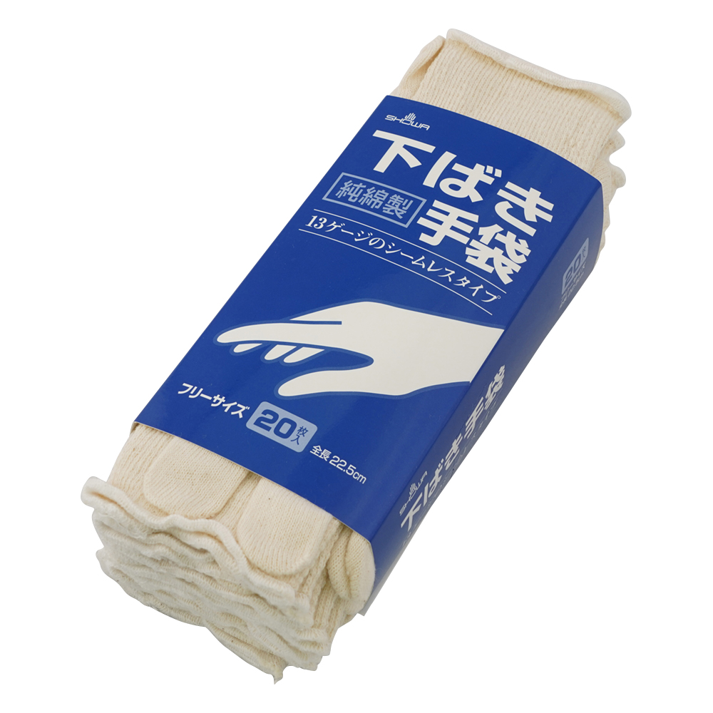 ●綿100%で吸湿性に優れています。●編み目が細かく縫い合わせのない、13ゲージ・シームレス編み下ばき手袋です。●裾部分は、ほつれを防ぐオーバーロック加工を施しています。●入数:1袋(10双入)●材質:綿●全長:225mm●手のひらまわり:195mm●中指長さ:80mm●左右兼用●サイズ:フリー●ケース入数量:40袋入※1袋あたりの価格です。