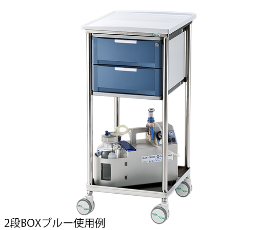 ●1つの鍵で全ての引出しをロックします(5段BOXの鍵は2ヶ所です)。●天板の三方に転落防止用の枠付きです。●補助天板:無し●材質:フレーム/ステンレス(SUS304)、天板・引出し/ABS樹脂●引出し内寸法:365×270×107mm●本体サイズ:455×405×910mm●有効天板サイズ:430× 380mm●重量:12.5kg●キャスター:φ100mmエラストマー製(ストッパー無し)●下部収納スペース高さ:414mm●耐荷重:天板・棚板/10kg、引出し(2段)/4.5kg/段●足パイプ径:φ25mm●交換用キャスター:ナビスキャスターΦ100 ゴム S無し(品番/8-1607-01-01)