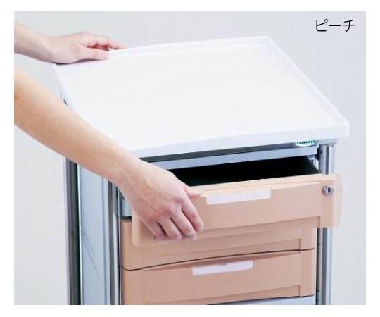 ●1つの鍵で全ての引出しをロックします(5段BOXの鍵は2ヶ所です)。●天板の三方に転落防止用の枠付きです。●補助天板:無し●材質:フレーム/ステンレス(SUS304)、天板・引出し/ABS樹脂●引出し内寸法:365×270×107mm●本体サイズ:455×405×910mm●有効天板サイズ:430× 380mm●重量:16.5kg●キャスター:φ100mmエラストマー製(ストッパー無し)●下部収納スペース高さ:137mm●耐荷重:天板・棚板/10kg、引出し(2段)/4.5kg/段、引出し(3段)/3kg/段●足パイプ径:φ25mm●交換用キャスター:ナビスキャスターΦ100 ゴム S無し(品番/8-1607-01-01)