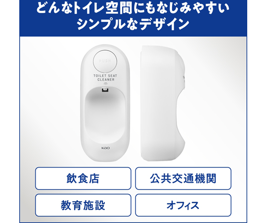 ●トイレマジックリン消臭・洗浄スプレー業務用シリーズ(別売)専用の据付型ディスペンサーです。●トイレットペーパーに洗剤液をとり、便座やドアノブ・水洗レバーなどをさっと拭き取るだけ。お客様や従業員の皆様に清潔なトイレが提供できます。●飲食店・ホテル・オフィス・公共施設など、どんなトイレ空間にもなじみやすいシンプルなデザイン。●抗菌PUSHボタンを採用。●ミストで出てくるタイプ。●ディスペンサーサイズ:縦100×横87×高さ230mm●重量:0.3kg