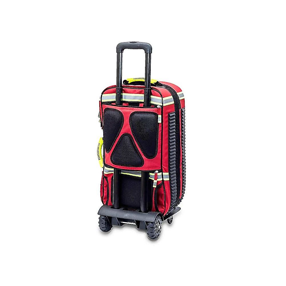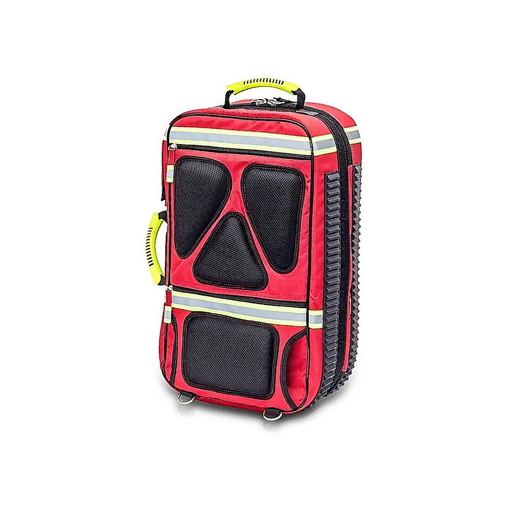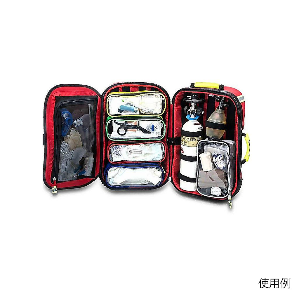 ●バッグ右上部に酸素チューブを通す穴がありますので、酸素ボンベを収納したまま処置が行えます。●背中部はクッション付きで、重量のあるものを搭載したまま背負うことができます。●収納ポーチとバッグの内側には面ファスナーが付いていますので、移動時の脱落を防ぎます。●ハンドル部分は蓄光素材です。●幅×奥行×高さ(mm):300×235×565●材質:ポリエステル●最大収納重量:約15kg●重量:3.65kg●USBポート付き●付属品:透明ポーチ×5個、アンプルバッグ×1個、針回収容器×1個、冷却ジェル×1個、ウエストベルト×1本