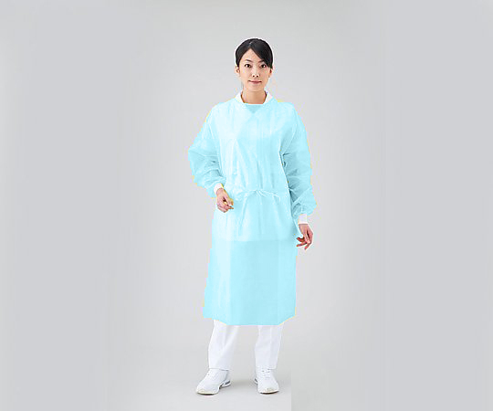●生地の境目に縫い目がないので、防護性が高いです。●袖口は長時間の着用でも圧迫感が少ない綿ゴム絞りです。●正面・腕に防水加工、背中は撥水性の不織布ですので長時間使用しても蒸れにくくなっています。●材質:正面・腕/PP(ポリプロピレン)不織布・PE(ポリエチレン)コーティング、背面/PP(ポリプロピレン)●身幅×身丈:680×1060mm●ひも長:800mm●袖口:綿ゴム絞り●入数:1箱(1枚/袋×50袋入)●箱サイズ(mm):320×300×380●クールタイプ●型番:クールブルー