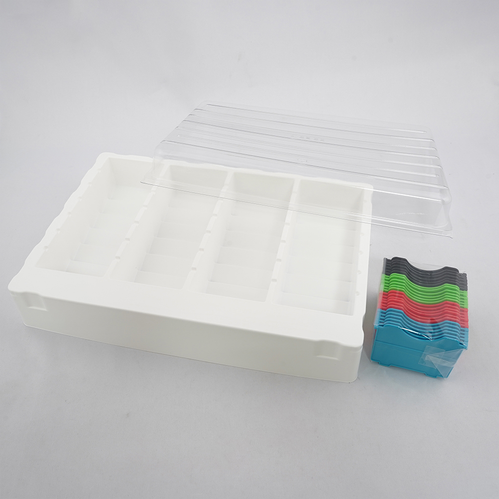 ●仕切板は入れ替えできますので、1日2~4回の処方に対応できます。●最大28マスに区切る事ができ、1マスは分包紙サイズで便利です。●仕切板を外すと軟膏容器等も収納できます。●軽量・フタ付きで積み重ねが容易です。●材質:トレー/PS(ポリスチレン)、フタ/PET(ポリエチレンテレフタレート)、仕切板/ABS樹脂●1マスサイズ:69.5×23.5×79mm●サイズ(mm):322×222×85●セット内容:トレー×1個、フタ×1個、仕切板(青・赤・緑・黒)×各6枚、シール(用法・曜日・名前)×1枚●おくすり仕分薬