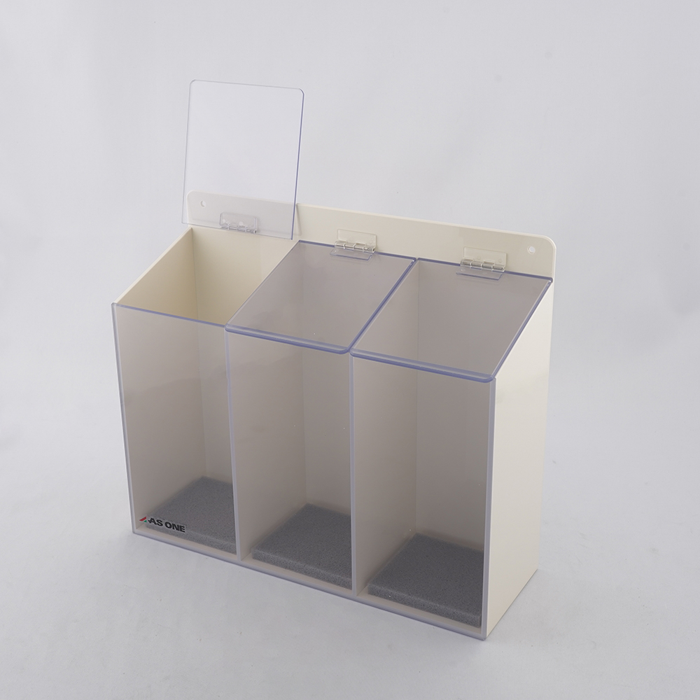 ●3室は個別の蓋で安全保管●仕様:ゴーグル用3室●有効内寸法(mm):80×90×180(×3室)●サイズ:285×100×240mm●材質:PVC●底部:クッション付き