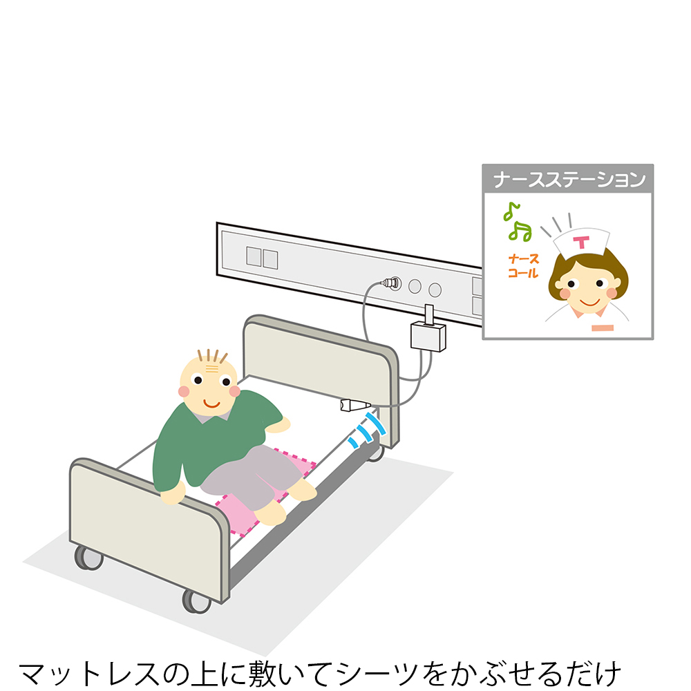 ●ベッドの端に設置するセンサーで、ベッドサイドまで移動するとナースコールで知らせます。●※導入後ナースコールシステムが変更になる場合は、中継ボックスと共に接続アダプタが必要になることがあります。●※ナースコールが平和テクノシステム「Yuiコール」の場合、別注対応や指定メーカー品でないと接続不可の場合があります。●仕様:コードレスタイプ●仕様2:ナカヨSP SC-R2(NSP)●センサー材質:PVC(塩化ビニル樹脂)●サイズ:センサー/800×180×4mm、無線中継ボックス/65×100×35mm、送信機/44×60×6mm●防滴仕様●電源:無線中継ボックス/DC5VACアダプター(付属)、送信機/3Vボタン電池×1個(テスト用付属)●リレー接点出力:0.5秒●センサー最大設置数:5チャンネル●ケーブル長:約1.2m●通達距離:約10m●周波数:314MHz微弱電波使用●一時停止ボタン付き●裏面滑り止め加工●※ご注文の際はお使いのナースコールの形状をご確認ください。