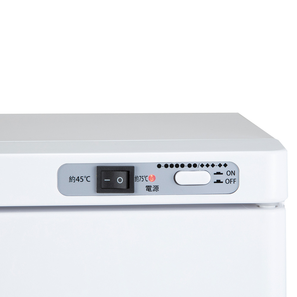 ●1台で2段階の温度設定で使用できます。●HIGHモードでは約75℃前後、LOWモードでは約45℃前後で安定した温度をキープします。●容量(L):20(おしぼり約70本)●外寸法:(幅)450×(奥行)285×(高さ)330mm●庫内寸法:(幅)375×(奥行)215×(高さ)240mm●重量:7kg●材質:本体/スチール、扉/ABS樹脂、庫内/アルミ合金●電源:AC100V 50/60Hz●消費電力:200W●庫内温度:HIGHモード/約75℃±10℃、LOWモード/約45℃±10℃(庫内中央部)●温度調節方式/バイメタル式サーモスタット 2個●付属品:棚バスケット×2枚、ドレイン受け×1枚●※タオルはポリ袋入りタオルをご使用ください。