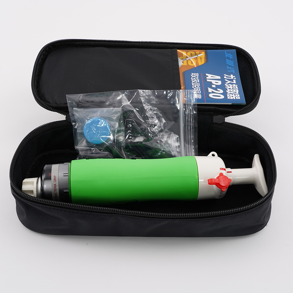 ●いつでもどこでも簡単にガス濃度を測定!●小型軽量で携帯に便利です。●吸引の終了がひと目で分かるフローインジケーター付きです。●セラミックのカッター付きです。●色:緑●真空法●重量:300g●付属品:収納ケース、保守用グリス、取付口ゴム管、ハンドストラップ●全長サイズ(mm):240●内容積(mL):100●北川式