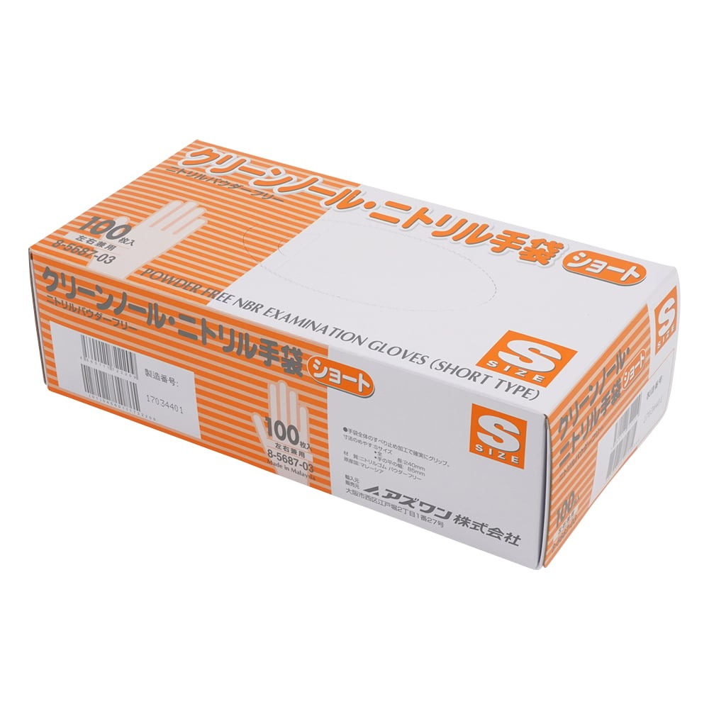 クリーンノール ニトリル手袋 ショート (パウダーフリー) ホワイト S 100枚入