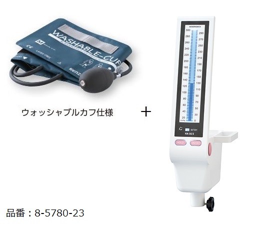 ●測定中バックライトが点灯して照度が2段階で変化し、無操作時、約1分で消灯します。●オートパワーOFF機能付きです(約5分でOFF)。●測定中の誤作動防止機能により、測定中は電源ボタンは反応しません。●仕様:本体+ウォッシャブルカフ●サイズ(mm):149×150×479※本体サイズ●材質:本体/ABS樹脂、カフ/ナイロン、チューブ/PVC、送気球/PVC、コネクタープラグ/PVC●重量:約1.5kg●適用範囲:24~40cm(上腕)●測定範囲:20~280mmHg●電源:単3アルカリ電池×3本(テスト用付属)●消費電力:最大0.2W(バックライト点灯時)●付属品:ウォッシャブルカフMサイズ、コネクタープラグ×2、送気球●※別途聴診器が必要です。●※0382(本体のみ)は、今お持ちの0-1397-01または0-9635-12のスタンドが使用できます。●スタンドパイプ:φ22mm