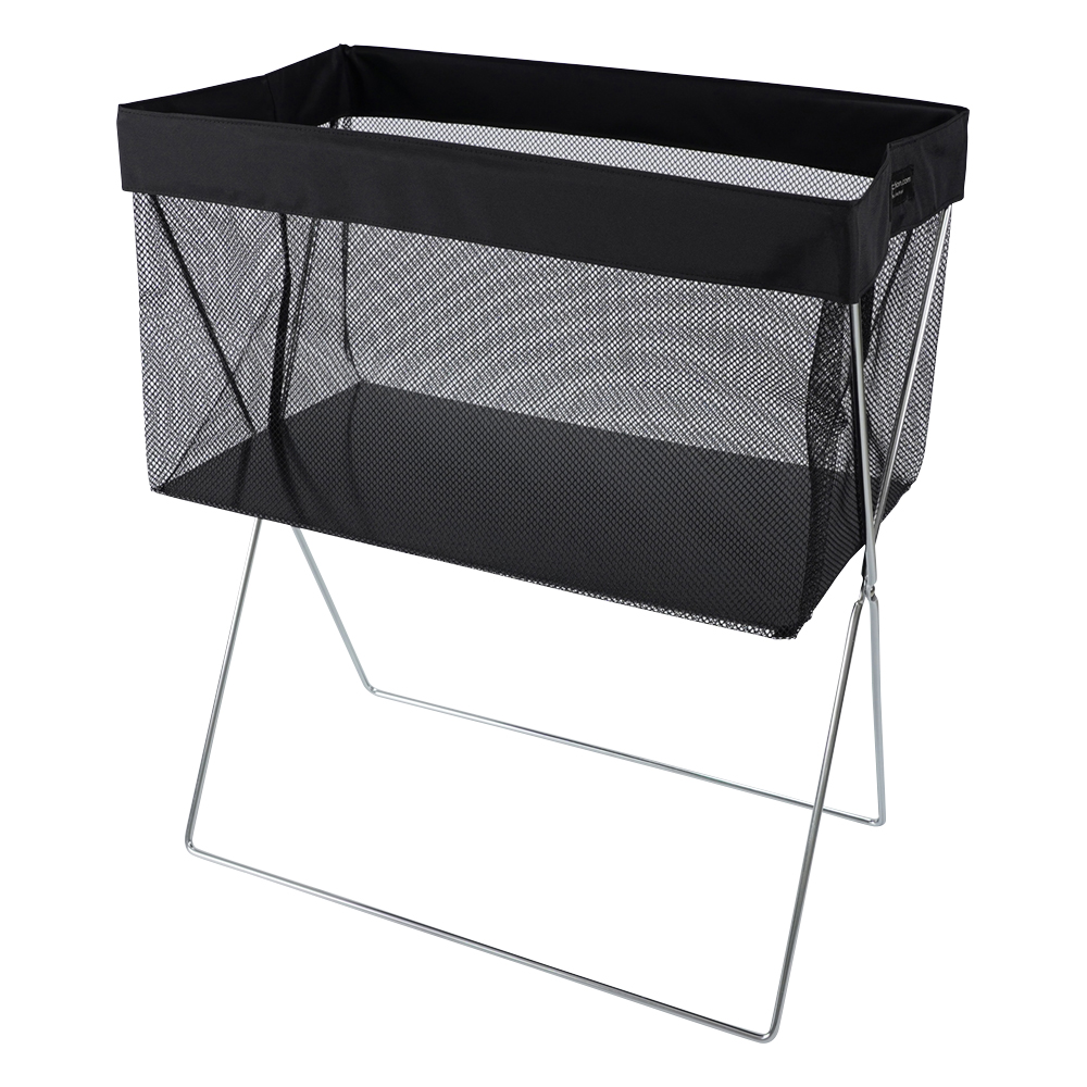 ●バッグはメッシュ素材で、取り外して洗濯ができます。●コンパクトに折りたたみができます。●R-336は出し入れが容易な底上げタイプです。●カゴサイズ(mm):430×250×250●色:ブラック●材質:本体/メッシュ(ナイロン100%)、フレーム/スチール(表面クロームメッキ)●サイズ:430×250×510mm●重量:約1.2kg