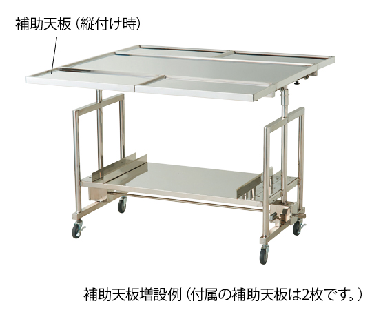 ●補助天板を増設(最大6枚)することでテーブルスペースを任意に拡張することが可能です。●本体には補助天板4枚分のテーブルスペースがあります。●ハンドル操作により無段階でテーブルの昇降が可能です。●材質:ステンレス(SUS304)●キャスター:φ75mm(ストッパー付き)●補助天板最大取り付け数:6枚●重量:38kg、補助天板:3Kg●幅×奥行×高さ(mm):1200×600×900~1200●有効サイズ(mm):1150×550●付属品:補助天板×2枚●※運送費・搬入費・据付費・組立費等が別途必要です。お問い合わせください。