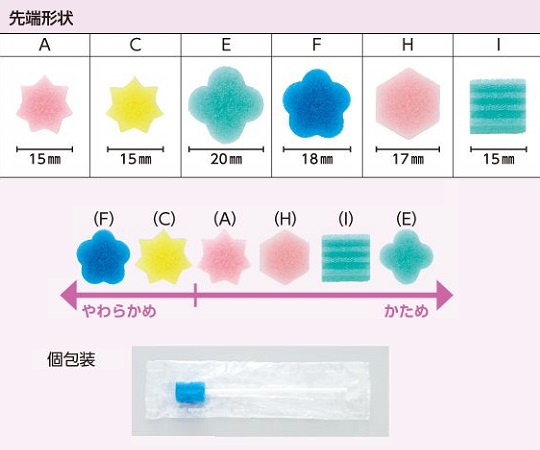 ●口腔内を傷付けずに、効率よく汚れをしっかり取り除くことが出来ます。●歯の表面、歯垢の汚れの他、舌の汚れ取りなど、多目的にご使用いただけます。●適度なしなりのあるプラスチック軸ですので、汚れの除去と同時にマッサージ効果も期待できます。●個包装ですので、衛生的です。●材質:スポンジ/ウレタン、軸/PP(ポリプロピレン)●サイズ:約φ15×150mm●入数:1箱(1本/袋×50袋)●スポンジの硬さ:かため●※サンプルをご用意しております