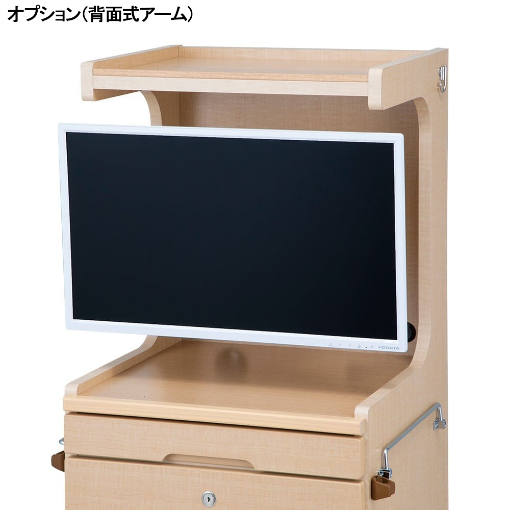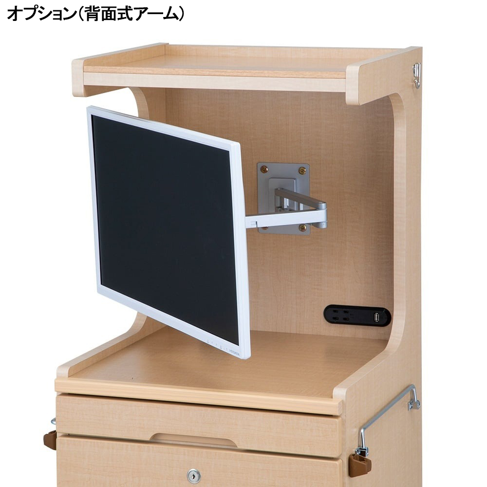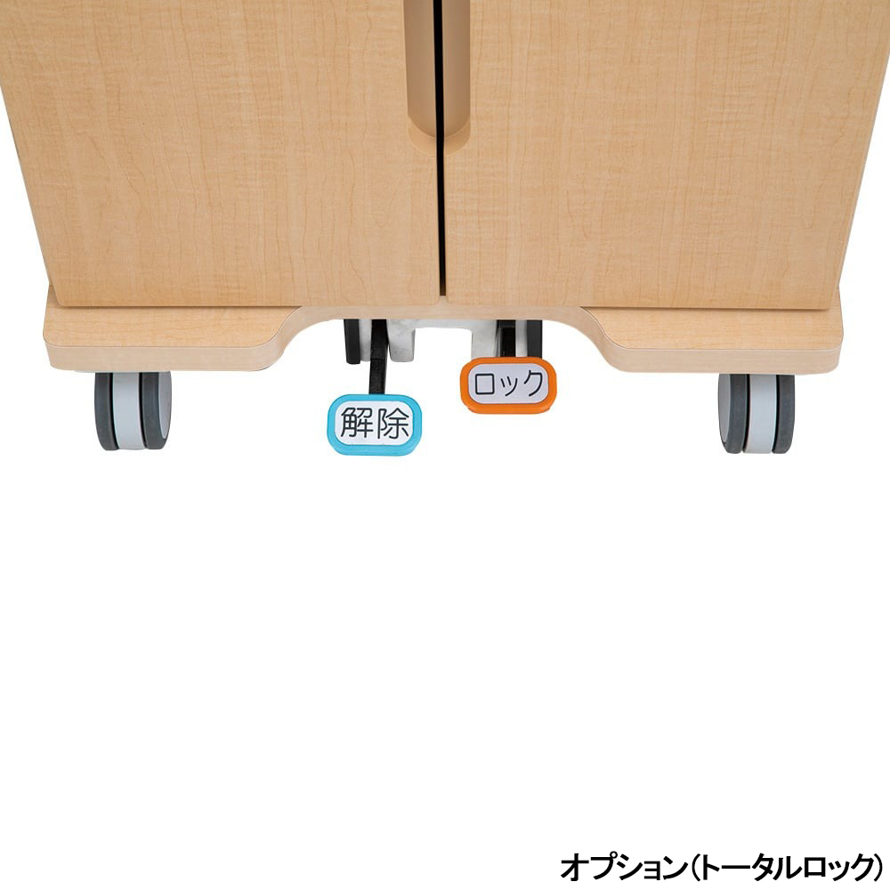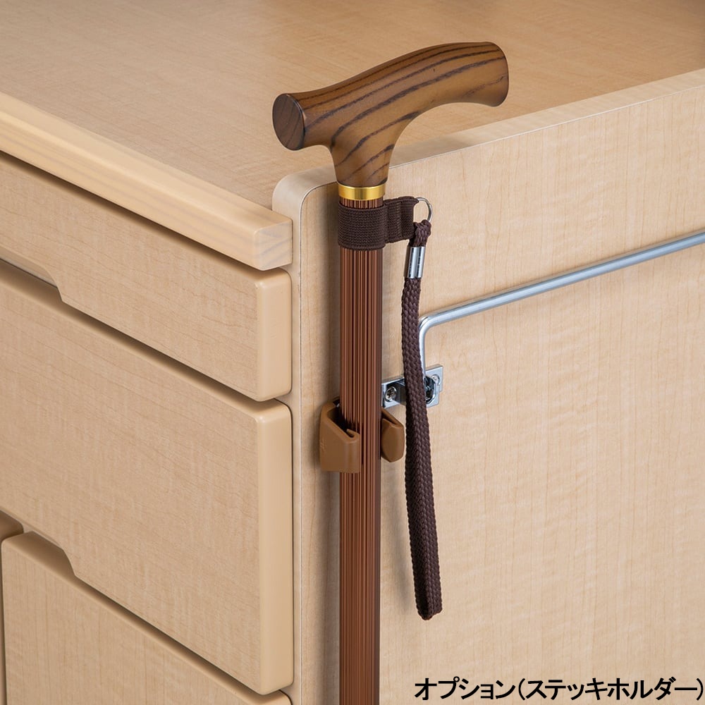 ●院内に馴染みやすい、木目調の床頭台です。●各種オプションを取り付けて、カスタマイズすることができます。●中段の引き出しには鍵が付いています。●下段には可動棚が付属しており、お好みの高さに調整して使用することが可能です。●幅×奥行×高さ(mm):482×470×1320●重量(kg):33●材質:本体/MDF(オレフィンシート貼り)、タオル掛け/スチール(メッキ仕上げ)●耐荷重:スライド式テーブル/15kg、中段引出し/15kg●キャスター:φ60mmナイロン製(前2輪ストッパー付き)●可動式タオル掛け×2箇所(両側面)●USBポート付コンセント(コンセント:2口、USBポート1口)●有効内寸法:上段(天面)/440×445mm、スライド式テーブル/435×325mm、中段/390×355×75mm、下段/440×425×430mm(棚板除く)●下段棚板ピッチ:60mm(3段)●付属品:中段引き出し用鍵×2本、下段用可動棚板×1枚●※オプション、サイズ変更等の特注も可能です。詳しくはお問い合わせください。●※運送費・搬入費・据付費・組立費等が別途必要です。お問い合わせください。