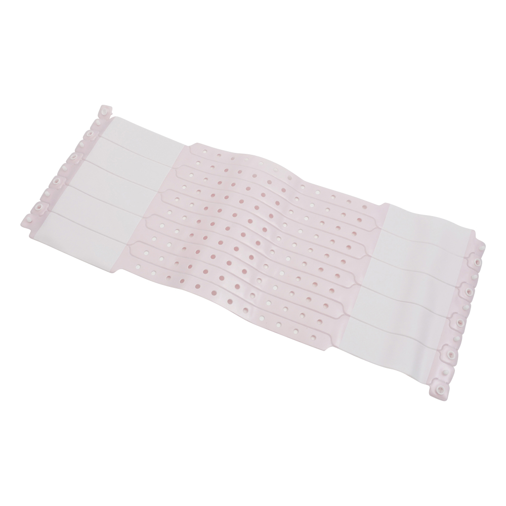 ●特殊ホック式で、容易に留める事ができ、一度閉じると切断しない限り取り外せません。●ボールペン・油性マジックなどでバンドに直接、容易に書き込むことができます。●防水性で洗面・入浴に差し支えがありません。●手触りがよく、肌に優しい感触です。●長さ/記入部分(mm):250/約25×65●入数:1箱(100本入)●材質:PVC(塩化ビニル樹脂)●周囲:95~230mm●長さ調節ピッチ:約12mm●色:ピンク
