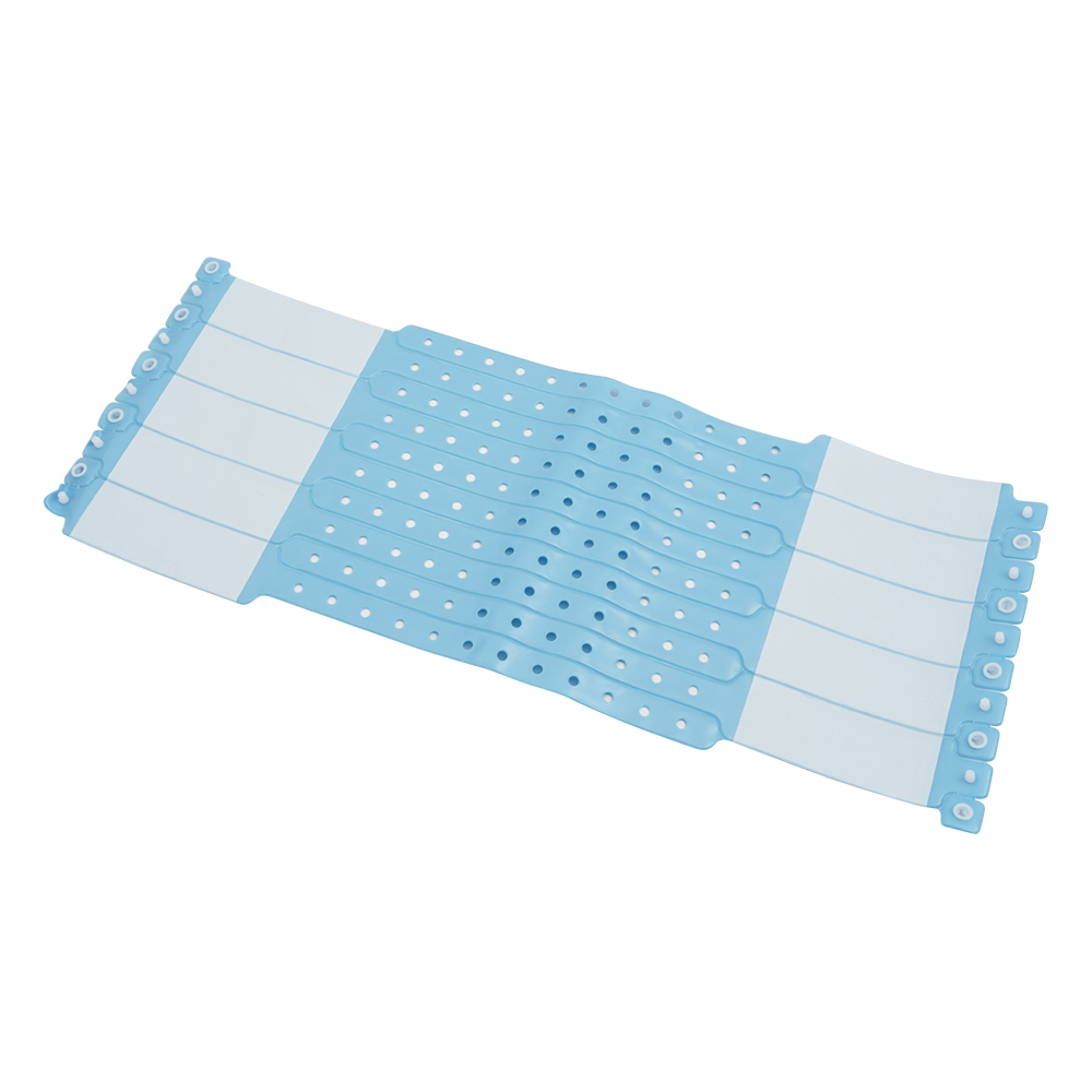 ●特殊ホック式で、容易に留める事ができ、一度閉じると切断しない限り取り外せません。●ボールペン・油性マジックなどでバンドに直接、容易に書き込むことができます。●防水性で洗面・入浴に差し支えがありません。●手触りがよく、肌に優しい感触です。●長さ/記入部分(mm):250/約25×65●入数:1箱(100本入)●材質:PVC(塩化ビニル樹脂)●周囲:95~230mm●長さ調節ピッチ:約12mm●色:ブルー