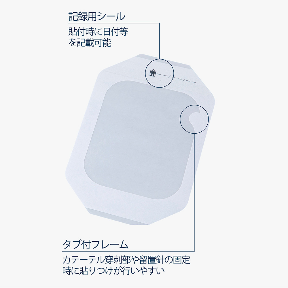 ●透明なため、貼付したまま患部の状態を確認できます。●透湿性・防水性に優れています。●記録用シールがあるため、貼付時に日付等を記載できます。●タブ付フレームタイプの剥離紙のため、カテーテル穿刺部や留置針の固定時に貼りつけが行いやすいです。●幅×長さ(mm):100×120●材質:PU(ポリウレタン)フィルム・アクリル系粘着剤●滅菌:EOG滅菌(個包装)●フィルム厚:25μm●※サンプルは、-01をご用意しております。