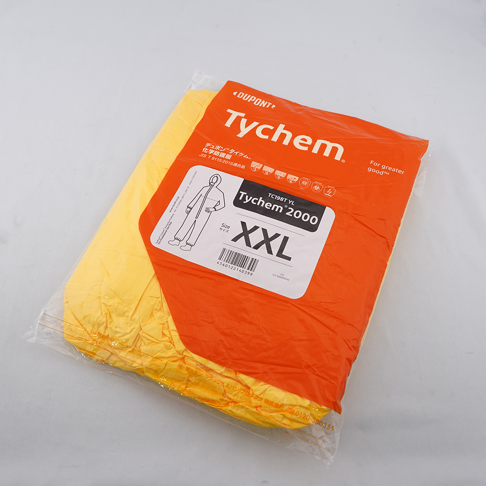 ●化学物質とバイオハザード双方に対応します。●デュポン?タイベック?に特殊ポリマーコーティングを施し、軽量でありながら多くの高濃度無機化学物質や感染症物質等危険性のある液体に対して高いバリア性があります。●主な用途:人体に有害な化学物質を取り扱う作業、感染症対策、ダイオキシン類対策など●使用上の注意事項:耐熱性、防炎性はありません。●その他:JIS T 8115 タイプ3、4、5、6適合品/JIS T 8122:2007 生物学的物質に対する防護服/人工血液バリア性能 クラス6/ウイルスバリア性能 クラス6●化学物質の耐透過性試験データは「メーカー商品情報」のリンク先(ケミカルデータベース)でご確認いただけます。●素材:デュポン?タイケム?2000●商品の仕様:フードゴム入/袖口ゴム入/裾口ゴム入/背ウエストゴム入/二重に接着可能なファスナーカバー付/接着可能なあごカバー付/縫い目にテープシーム●サイズ:XXL●適応身長:186~194cm●適応胸囲:116~124cm●色:黄●使い切り●※デュポン?、タイベック?、タイケム?は、米国デュポン社の関連会社の商標又は登録商標です。