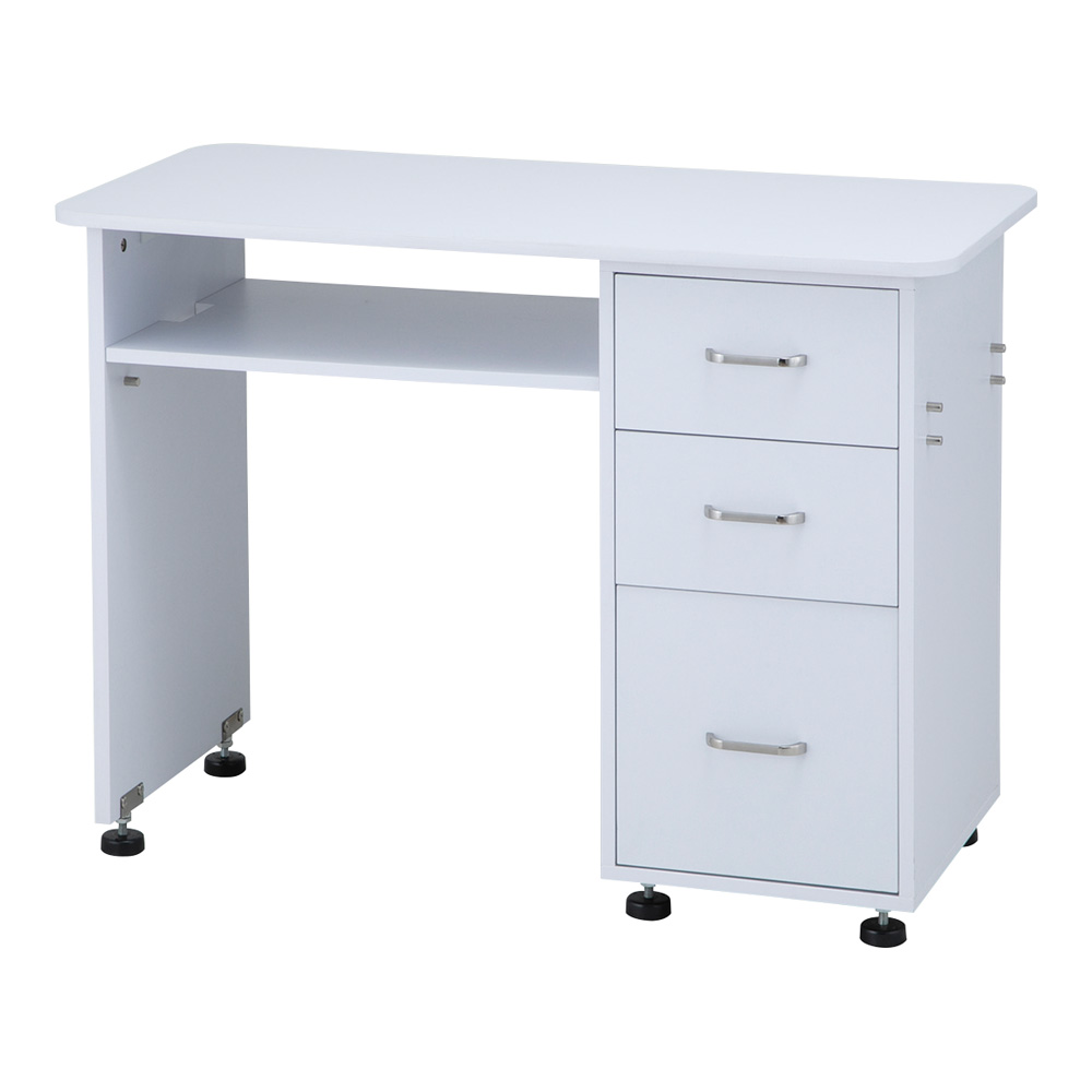 ●引出し部分が回転可能のため、設置場所を選ばず左右どちらにも引出しをセットすることが可能です。●収納に便利な3段引出しと棚板がついています。●オフホワイトで落ち着いた雰囲気の採血台です。●幅×奥行×高さ(mm):980×450×725●重量(kg):31●材質:メラミン化粧板●棚板内寸法(天板からの距離):130mm・170mm●天板サイズ:980×450mm●引出し内寸法:上段・中段/幅240×奥行320×高さ100mm、下段/幅240×奥行320×高さ140mm●組み立て式(要工具)