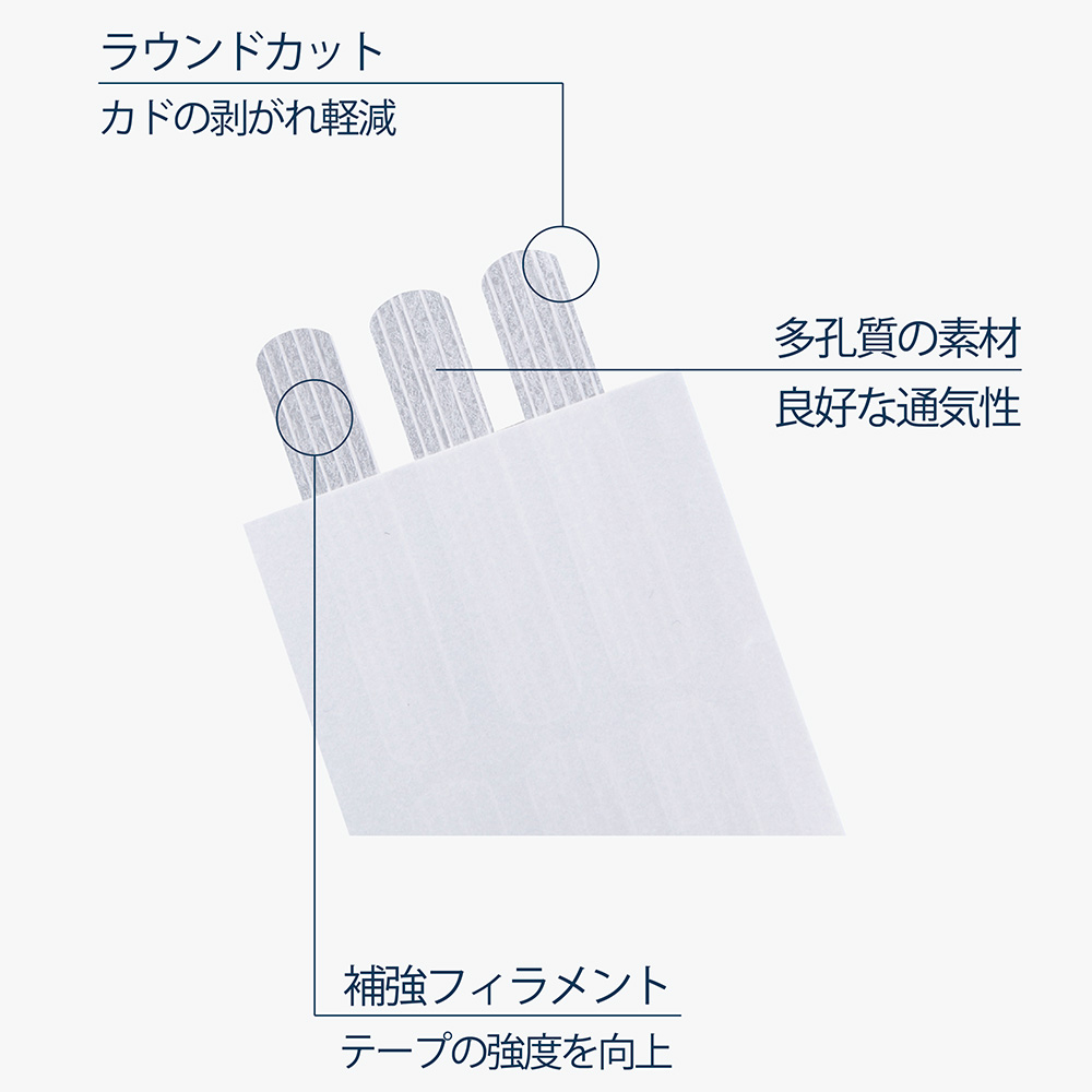 ●皮下縫合後の表皮接合や外来・救急での傷口の接合などに使用できる皮膚接合用テープです。●多孔質の素材により通気性に優れています。●テープの両端をラウンドカットしており、カドの剥がれを軽減する形状にしています。●10袋入りの少量包装のため、過剰在庫防止に繋がります。●幅×長さ(mm):6×75●材質:レーヨン不織布・アクリル系粘着剤●ラテックスフリー●EOG滅菌済(個包装)