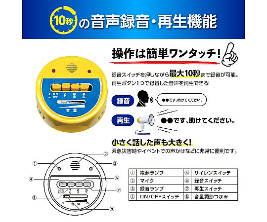 ●サイレン・録音・再生機能が付いています。●型番:3900●サイズ(mm):φ155×250×210●材質:ABS樹脂●電源:単1乾電池×4本(テスト用付属)●最大出力:10W