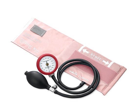 ●ウェルチ・アレン社製のデュラショックゲージを採用していますので、75cmの高さから落としても壊れたり、精度を損なうことはありません。●ギヤを使わない構造で、水銀血圧計と同様に正確な脈波を把握できます。●医療現場で実績のあるツーピース型のカフ(カフとチューブ付きゴム袋)を採用し、使いやすさを追求しました。●ゲージをループに取り付けたままでスライドでき、ゲージは360度の回転ができるので、見やすい位置からの測定が可能です。ゲージはループからの脱着もできるので、数値の読み取りが、手元でも行えます。●色:ピンク●カフサイズ(mm):140×540●材質:カフ/ナイロン、ブラダー(ゴム袋・チューブ)・ゴム球/ラテックス●ゲージ:ウェルチ・アレンDS44A デュラショックゲージ●測定範囲:0~300mmHg●重量:約260g●カフ適応腕周サイズ:24~40cm●※ケースは別売です。