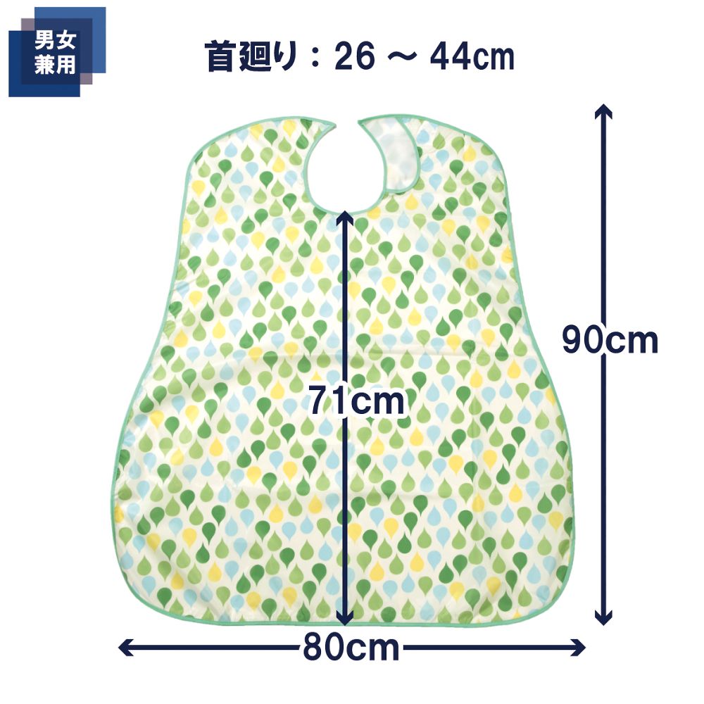 ●耐久性・耐熱性に優れ、やわらかな素材です。●素材:ポリエステル100%●首廻り:約26~42cm●面ファスナー式●洗濯方法:洗濯可/乾燥機可(家庭用乾燥機60℃まで)●色:グリーン●タイプ:ポケット無し●幅×丈(mm):800×900●撥水加工●脱水機可