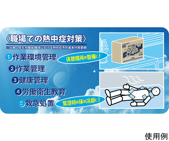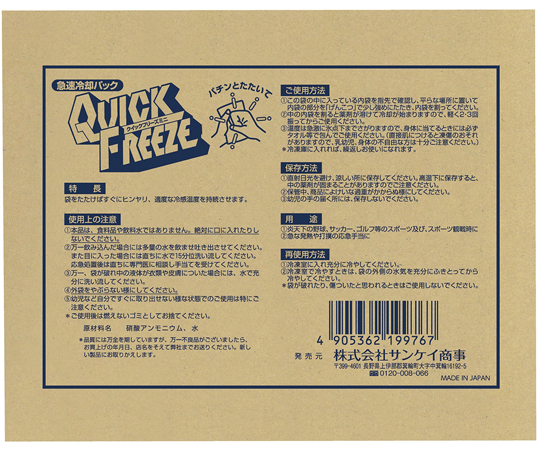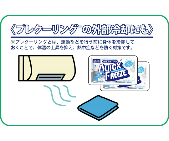 ●袋を叩くだけで氷点下まで急速冷却します。●ケース下の取り出し口から1枚ずつ取り出せるので、暑い時期は常時設置して暑さ対策用として使用できます。●原材料名:硝酸アンモニウム、水●保冷時間(室温25℃時):約15~30分(室温25℃時)●用途:職場での熱中症対策に。炎天下の野球、サッカー、ゴルフ等のスポーツ及び、スポーツ観戦時に。急な発熱や打撲の応急手当てに。