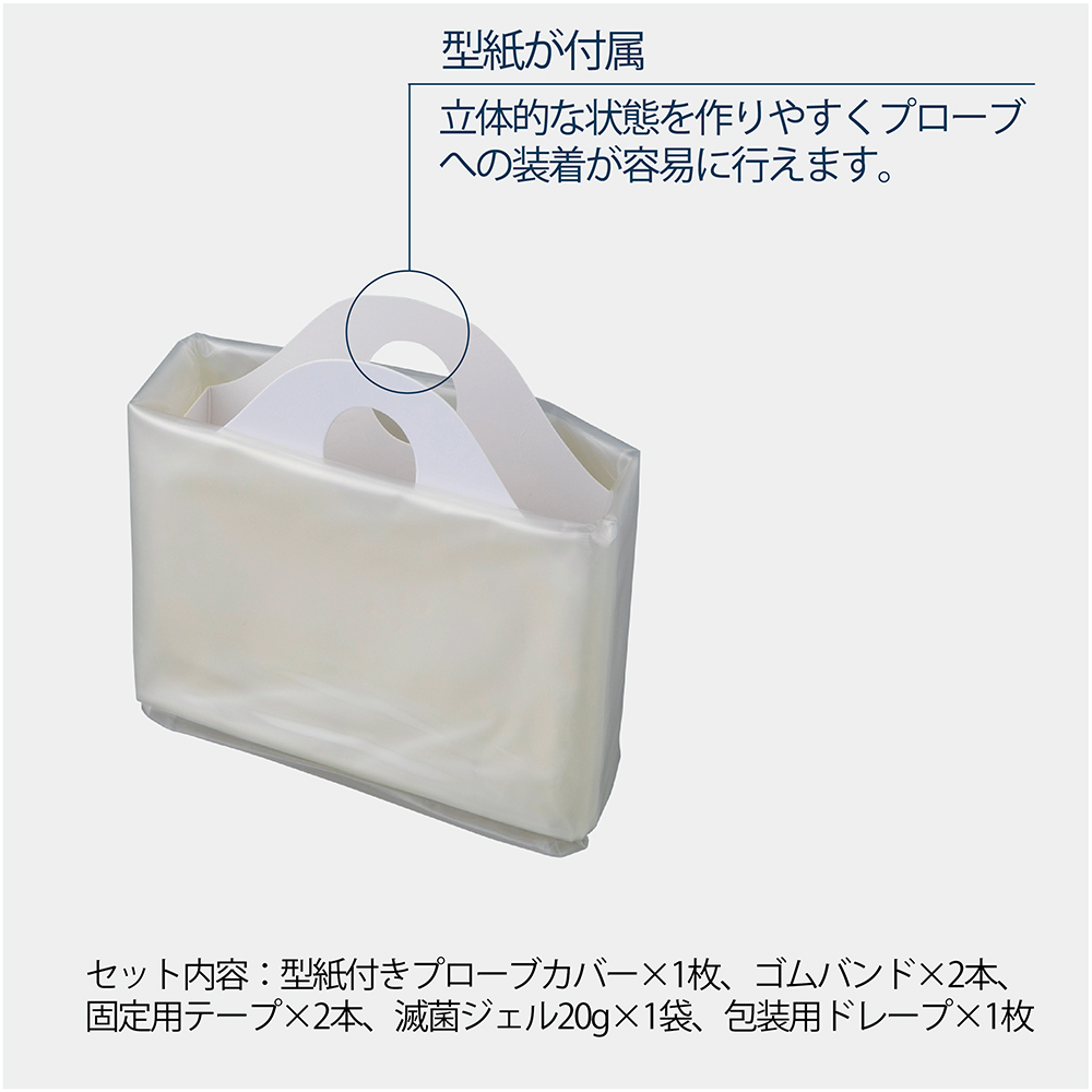 ●滅菌済みの超音波プローブカバーです。●カバーは伸縮性があり、プローブへの密着性を高めます。●型紙が付属しており、プローブへの装着が容易に行えます●セットに含まれる構成品は全てラテックスフリーです。●サイズ(mm):140×910●入数:1箱(25セット入)●材質:PU(ポリウレタン)●セット内容:型紙付きプローブカバー・固定用テープ×2・輪ゴム×2・滅菌ゲル(20g)・包装用ドレープ●EOG滅菌済(個包装)