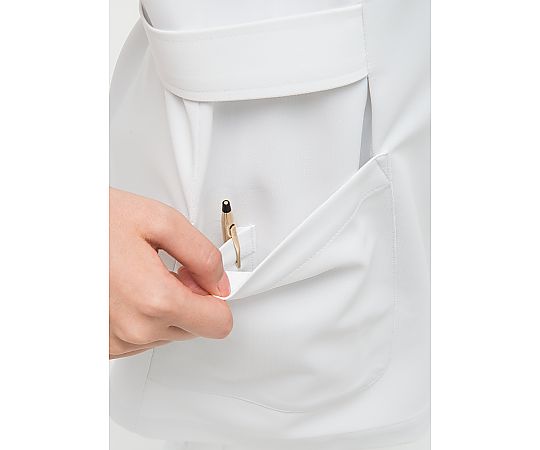 ●制菌・制電・防汚・透け防止素材を使用しています。●伸縮性に優れています。●素材:ポリエステル90%・綿10%(制電糸入)●制菌・吸水・防汚・制電加工●透け防止対応●左胸・両腰ポケット●タイプ:半袖ホワイト●サイズ:S●着丈(cm):67●バスト(cm):92●肩幅(cm):38●半袖(cm):19