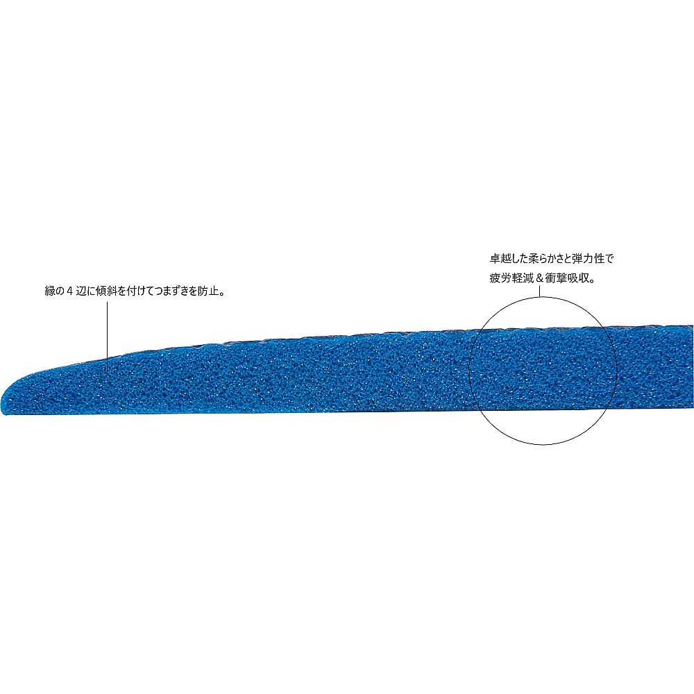 ●柔らかさと弾力性に優れています。●表面の細かな目が足元の滑りを防止します。●四隅は傾斜付きで、つまずきにくく安心です。●材質:発泡PVC(塩化ビニル樹脂)●色:ブルー●幅×長さ×厚み(mm):910×1520×9●重量(kg):約5