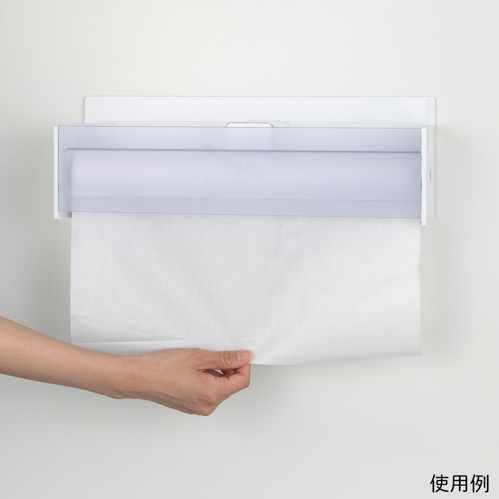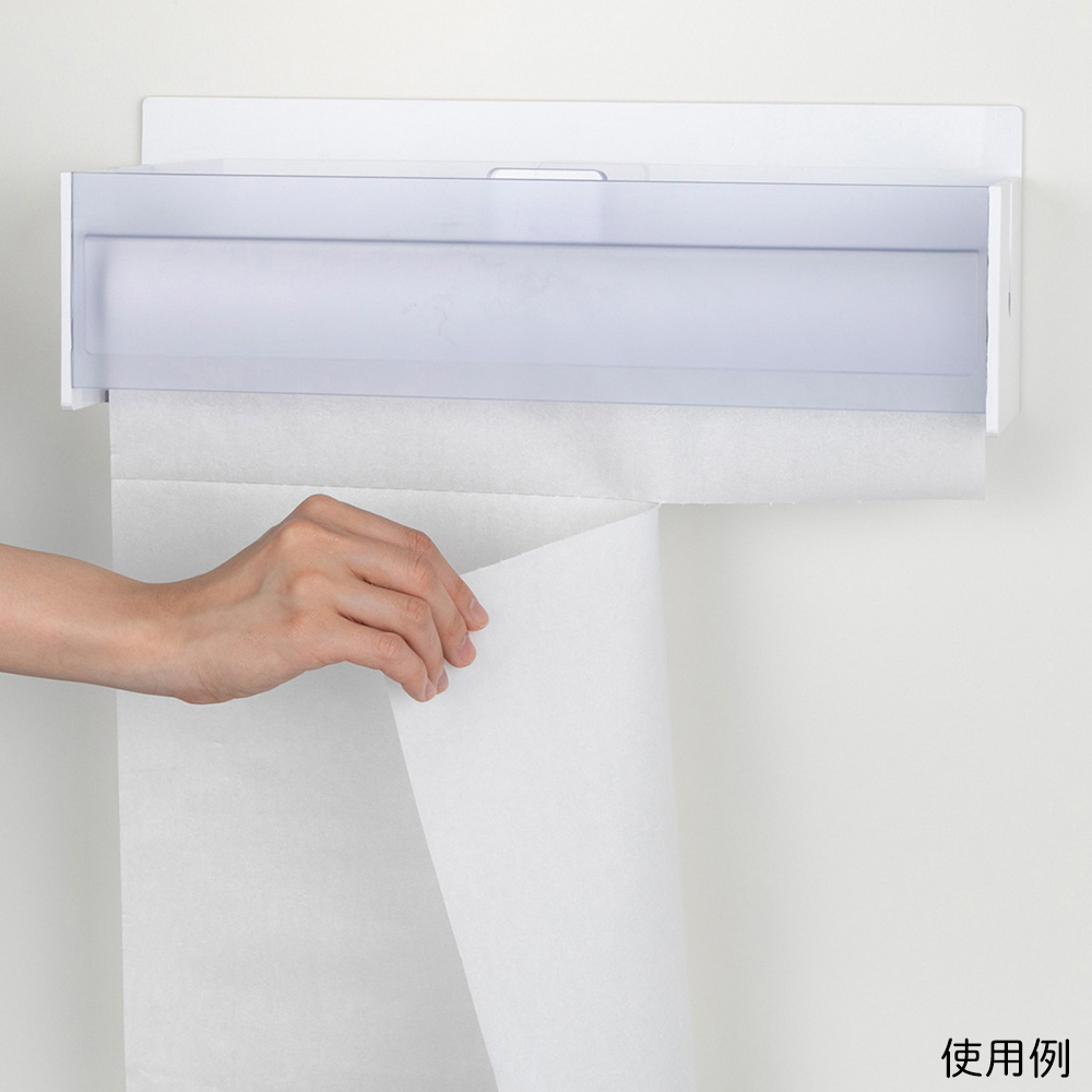 ●ロールシーツをマグネットで壁面収納●幅370mmのロールシーツをキャビネット等の磁性のある壁面や、サイドハンガーネットを備えたワゴン等に設置することができます。●ミシン目入りのロールシーツであれば、片手で容易に切り取ることができます。●切り取った後、ロールシーツの先端が適正な長さで垂れさがるため、次に使用する際に容易につまんで取り出すことができます。●フタ付きですので、衛生的な保管が可能です。ロールシーツをマグネットで壁面収納●幅×奥行×高さ(mm):390×106×130●仕様:背面マグネット●材質:PVC(塩化ビニル樹脂)、マグネット●使用可能ロールシーツサイズ:幅370mm