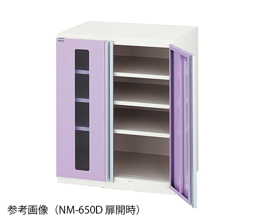 ●収納物のサイズにあわせて棚板の取り付け位置を調節できます(50mm間隔)。●鍵付きで間口の広い両開き扉です。●型番:NM-900D●幅×奥行×高さ(mm):900×498×795●材質:本体/スチール(メラミン焼付塗装)、ハンドル/アルミニウム●付属品:棚板×3枚●鍵付き●組み立て式(要工具)●※スライドボード(8-9908-01)との併用はできません。