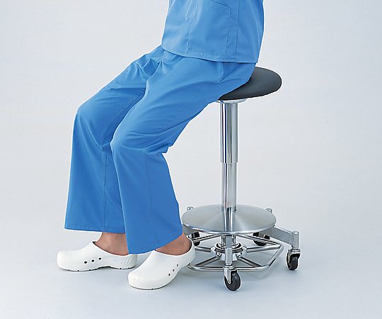 ●手を使わずにペダル操作で容易に昇降●リングペダルでどの位置からでも足で昇降ができます。●長時間の作業が楽に、また昇降操作を円滑に行える円形フットレストを装備しています。 ●座面は抗菌防汚レザーを使用しています。●幅×奥行×高さ(mm):495×495×530~710●材質:フレーム/スチールメッキ、座面/ポリウレタン(レザー張)●座面サイズ:φ350mm●フットスペース:φ330mm●キャスター:φ65mm●重量:8.5kg●型番:NOC-02