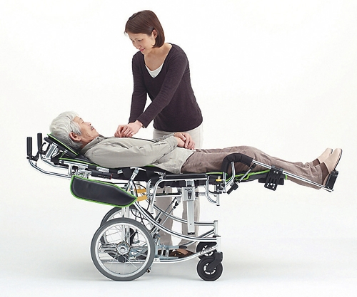 ●利用者の身体に沿うように動き、前ズレが起きにくいリクライニング機構です。●肩幅を大きく拡げたバックシートが身体を優しく包み込み、リクライニング時にはアームサポートとして両腕をしっかりと支えます。●フラット時はリクライニングと連動して座面が約15cm上昇し、介助負担を軽減します。●幅×奥行×高さ(mm):600×1140~1415×820~1215●材質:本体/アルミニウム、シート/ビニールレザー・PU(ポリウレタン)、主輪/ノーパンクタイヤ(ハイポリマータイヤ)、キャスタ/PU(ポリウレタン)●車輪径:キャスタ/φ6インチ、主輪/φ16インチ●前座高:背上げ時/490mm、背下げ時/630mm●後座高:背上げ時/480mm、背下げ時/620mm●座面サイズ:(幅)420×(奥行)300・320・340・360・380mm●リクライニング角度:100~170°●重量:24kg●耐荷重:100kg●介助式●リクライニング式●ノーパンクタイヤ●沖縄・北海道・離島、個人宅への配送は別途費用が発生しますのでお問い合わせください。