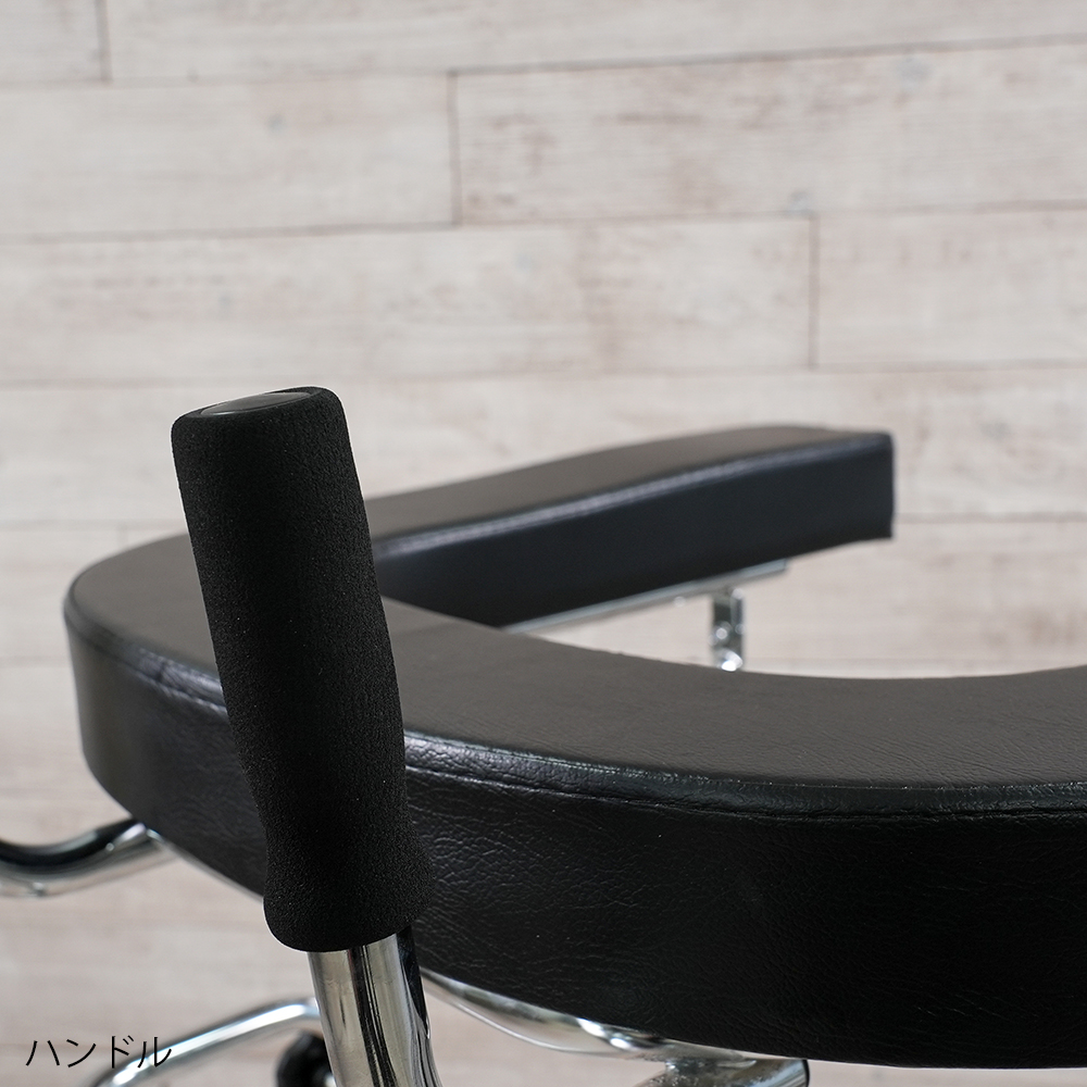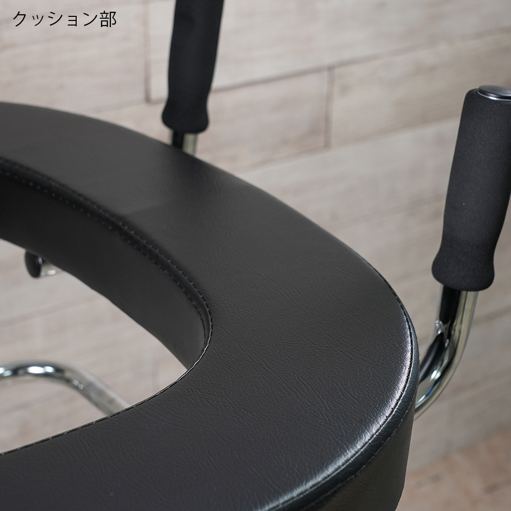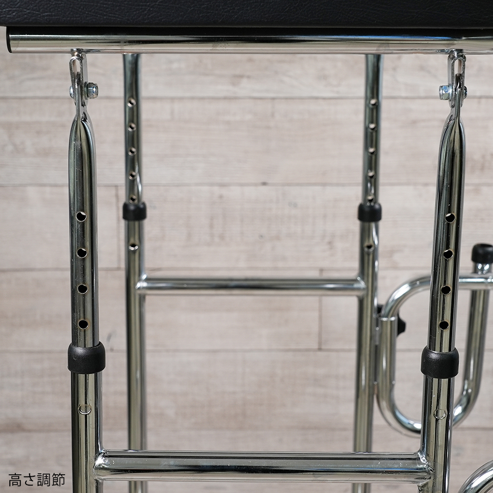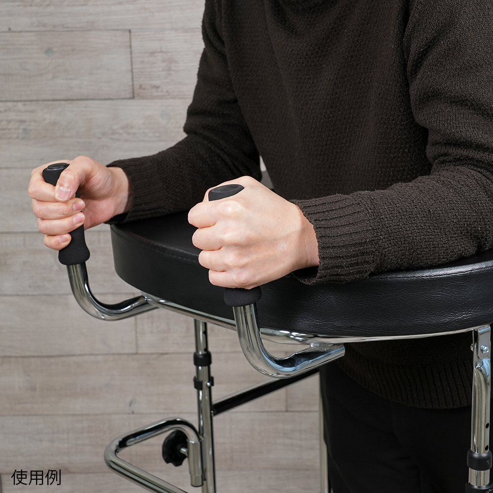 ●4ヶ所のノブネジによりアームレストの高さを調節することができます。●アームレストとハンドルが付属しており、扱いが容易です。●幅×奥行×高さ(mm):630×730×1000~1250●材質:本体/スチール、アームレスト/ウレタン・PVC(塩化ビニル樹脂)張り●手摺内寸法:366mm●キャスター:φ100mmエラストマー製(後輪ストッパー付)●耐荷重:100kg●重量:11kg